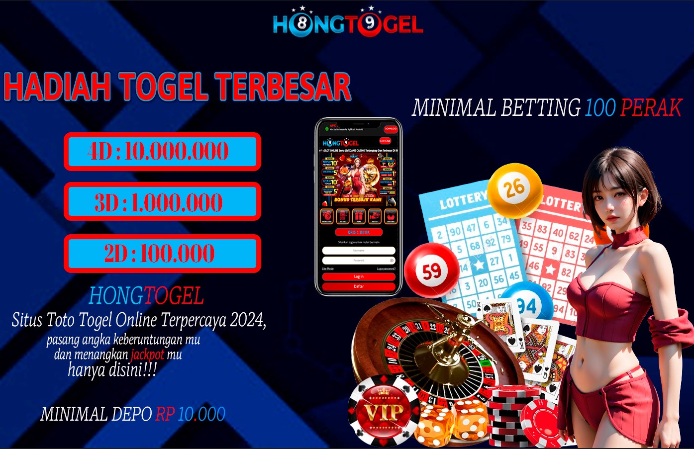 HONGTOGEL merupakan situs toto togel online yang menawarkan berbagai jenis permainan togel dari berbagai pasaran terkenal seperti Singapore, Hongkong, Sydney, dan masih banyak lagi. Dengan minimal taruhan hanya 100 perak, kalian sudah bisa ikut bermain dan berkesempatan memenangkan hadiah-hadiah menarik setiap harinya.